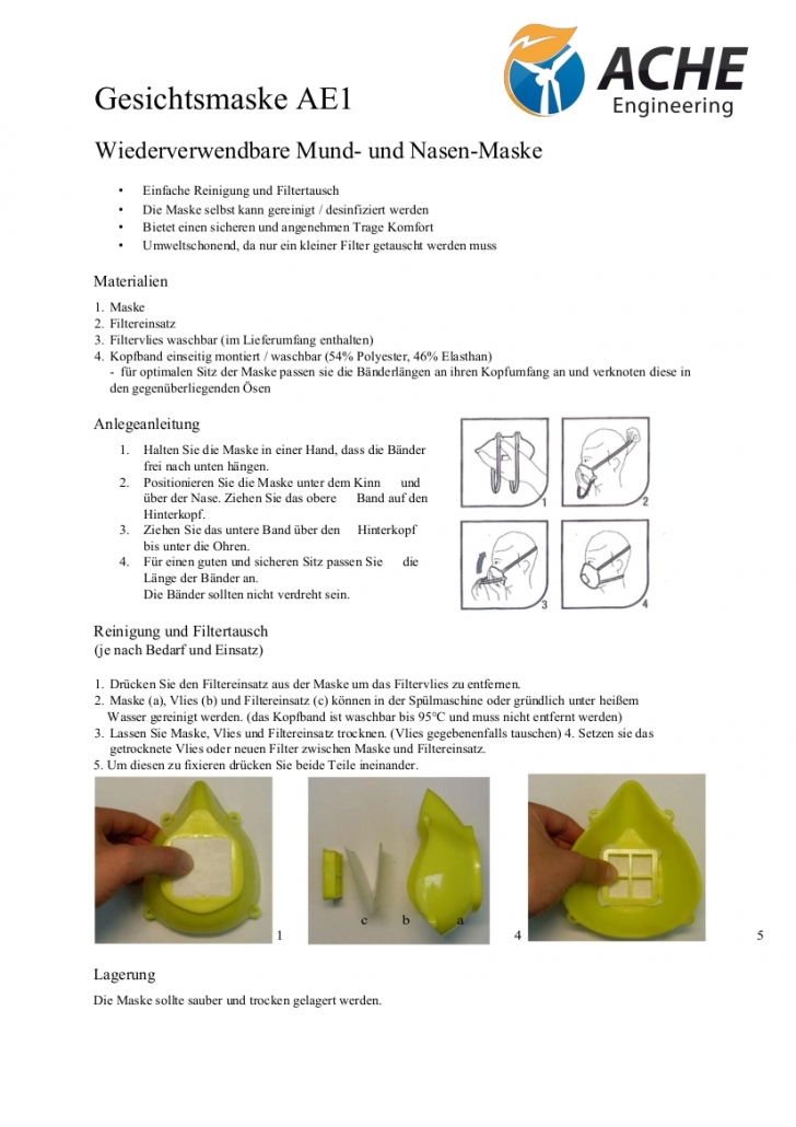 Je Maske liegen 3 Stück Ersatzfilter dabei, ein Filter ist vormontiert. Auch diese können gewaschen werden, siehe Anleitung.